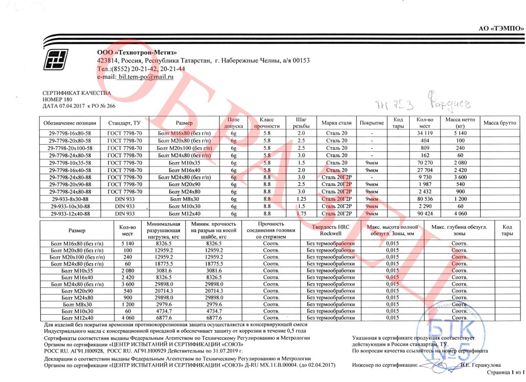 6g; 8g — для болтов по ТУ 14-4-1760-94